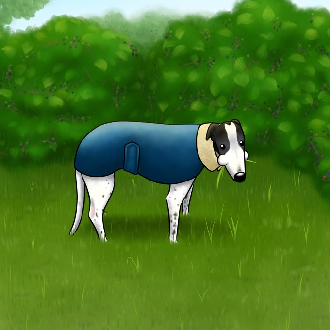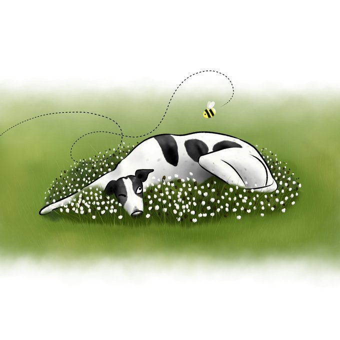 A graze-y day for #colour_collective. Now that all of the grass has returned to lushness, our #greyhound Leela is back to doing her cow impression. #dogs #greyhounds #illustration