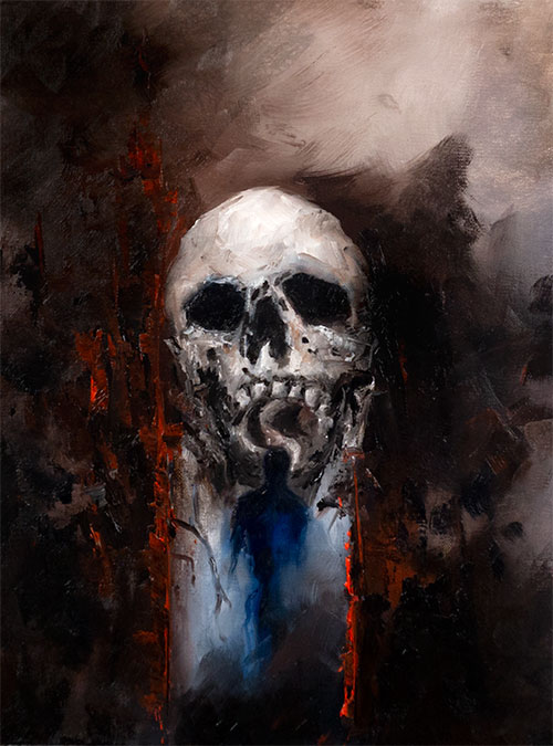 Just off the easel: "rebirth", 9 x 12 oil painting #darkart #horror #skull #creepy #illustration #fantasyart #grimdark #resurrection #nightmare #dreams