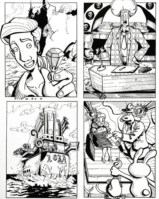 Primeras 4 ilustraciones de este #inktober2021 . Cuál es tu favorita?#monkeyisland #grimfandango #SamandMax @GuybrushSpain @DoubleFine @yakwaxlips @LegendOfMI