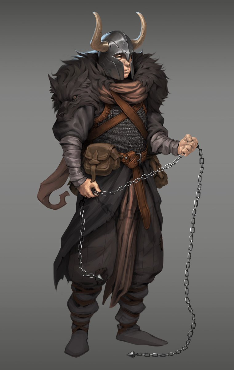 NPC Spotlight 04: Thorgrim Oddrson Raised far in the north where wolves are a welcome sight, and their pelts even more, Thorgrim traveled across Kandar as a trader and eventually came to a position of leadership within his band of merchants. #ttrpgfamily #dndart #grimhollow