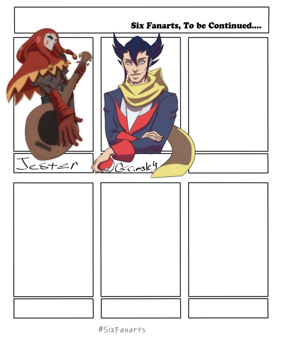 Gonna use my ol' comic style for the sake of time instead of doing full on renders this time around. Per request, Jester from @mo95ni and Grimsley from @GaneneDaGriffox Can't wait to get to the rest! #SixFanartsChallenge #sixfanarts #Grimsley #pokemon #DarkestDungeon