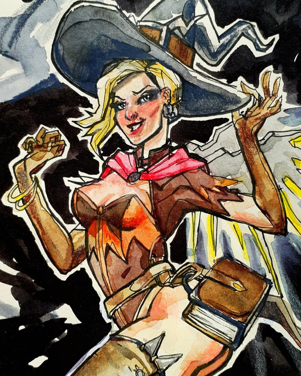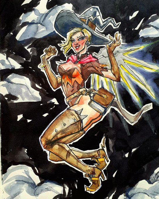 #gristober2021 Theme ☁️clouds+glow🌟 Featuring one of my favorite skins ever - witch Mercy🧙💯 #Inktober #inktober2021day17 #Overwatch #gristober #sketchbook