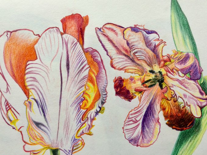 Parrot tulip studies Watercolour in sketchbook #growjune #plants #painting #thursdayvibes #ArtistOnTwitter #artist #artistsoninstagram