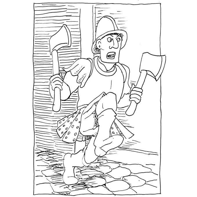 In today's #Discworld #Illustration, It looks like a Klatchian Hots with #Anchovies. #fantasy #guardsguards #citywatch #TerryPratchett #Sergeant #Fire #arrest #pizza #PenandInk #seattleillustrator