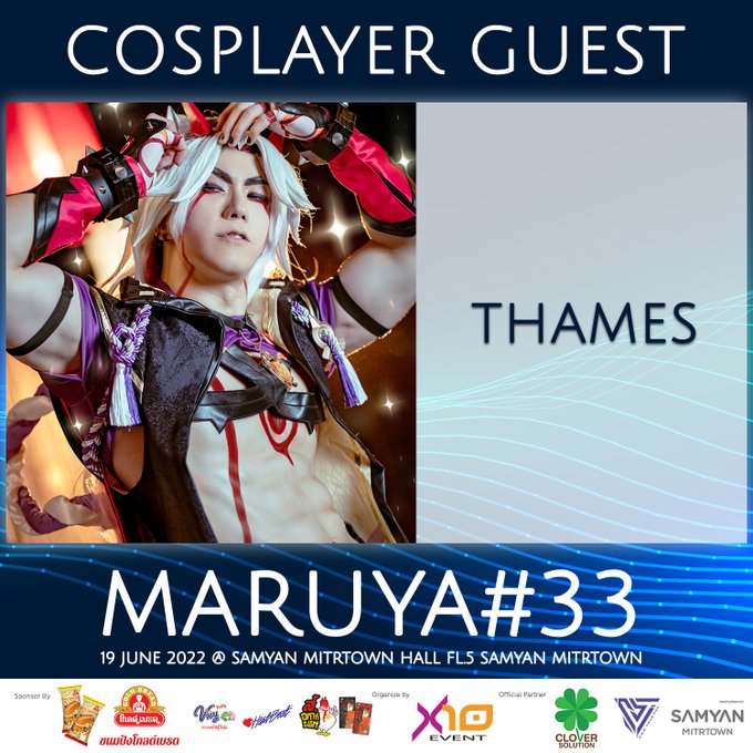 ประกาศแขกรับเชิญ Cosplayer ของงาน MARUYA #33 มาพบกับพี่ Thames วันที่ 19 มิถุนายน ณ สามย่านมิตรทาวน์ฮอลล์ ชั้น 5 สามย่านมิตรทาวน์ ตั้งแต่เวลา 12.00 - 20.00 น. กันนะคะ ========== ค่าเข้างาน 150 บาท #COSPLAYOK สามารถแต่งคอสเพลย์มาได้ไม่จำกัดธีม #MARUYA #MARUYA33 #Guest #Cosplayer
