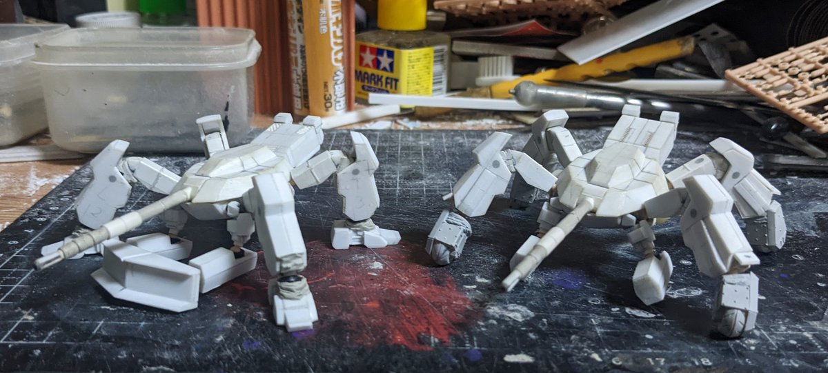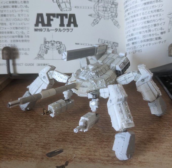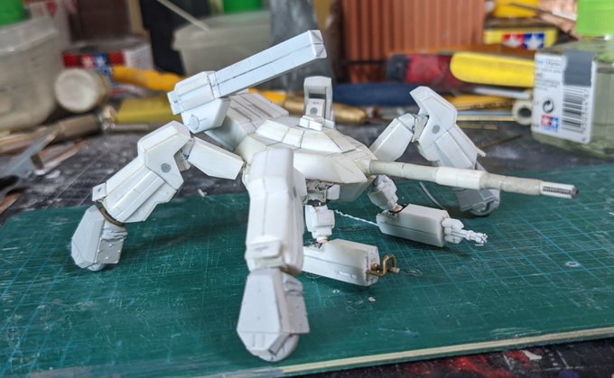#ガングリフォン #gungriffon まん点工房ガングリフォンシリーズ最新作1/144ブルータルクラブ&ランドクラブ進捗状況。ブルータルクラブの40ミリ機関砲と25ミリガトリング砲はこんな感じ。ランドクラブのドーザーブレードはシールドにもなります。
