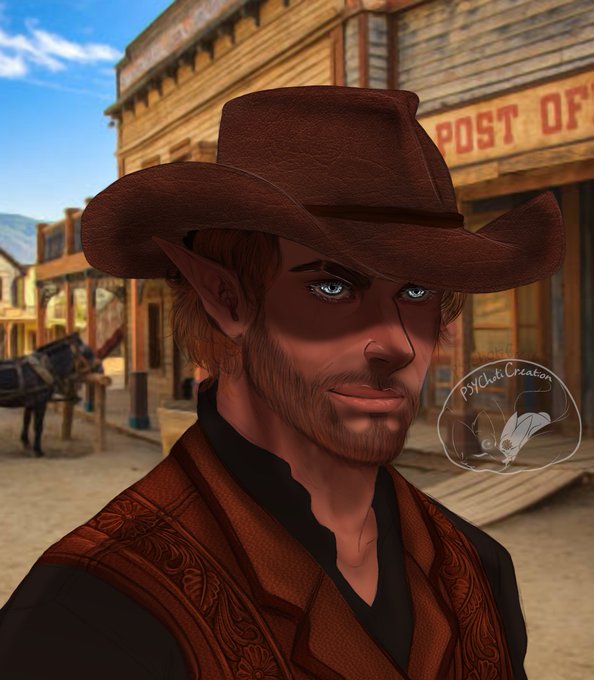 Crimson McCree Gunslinger elf #dndart #dndcharacter #dndoc #dungeonsanddragons #dndfandom #illustration #infinitypainter #digitalart #elf #gunslinger #fantasy #cowboy #western #westerntheme #wildwest