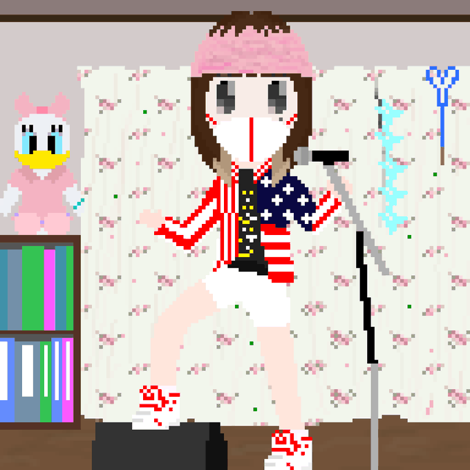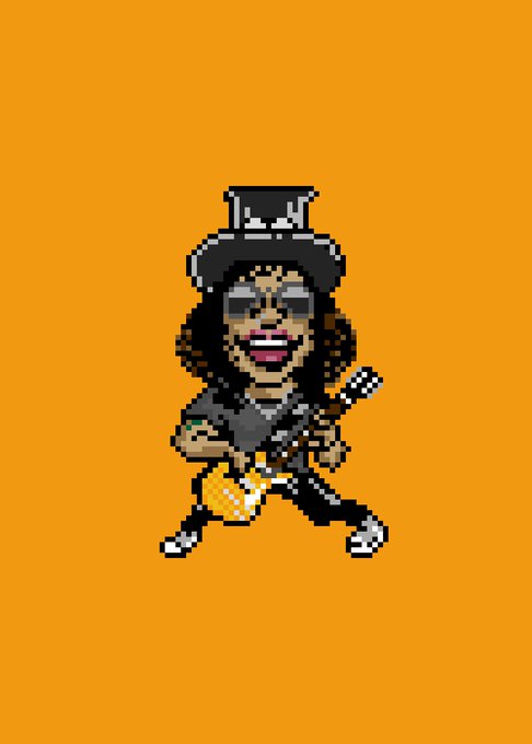 11月5日、2017年以来9度目の来日を果たした『#ガンズ・アンド・ローゼズ』のヴォーカル「#アクセル・ローズ」さんと、ろりめるさん(@rorimel_s2)を勝手にコラボしてみたおぅん! #365日365ろりめるドット絵 #145/365 #ドット絵 #pixelart #GunsNRoses