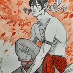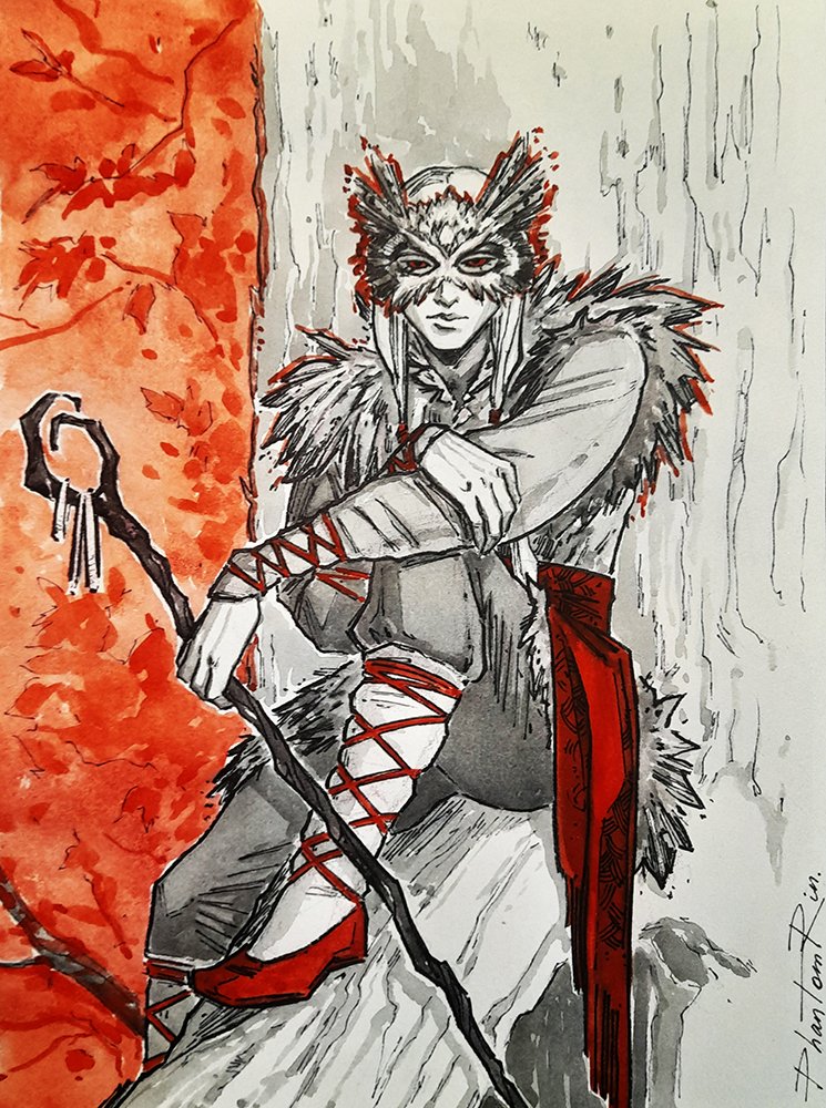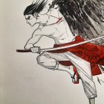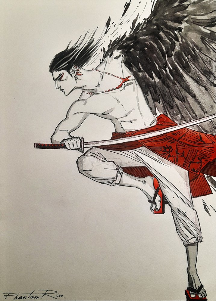 Inktober. Day 7 - Karasu. #Inktober #inktober2022 #karasu #raven #guy #katana #fantasy #red #art #illustration #traditionalart #PhantomRin