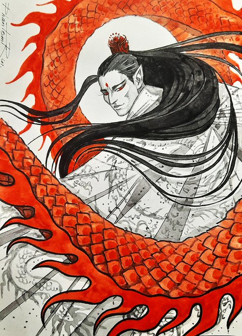 Inktober. Day 17 - Dragon. #Inktober #inktober2022 #dragon #fantasy #guy #red #art #illustration #traditionalart #PhantomRin