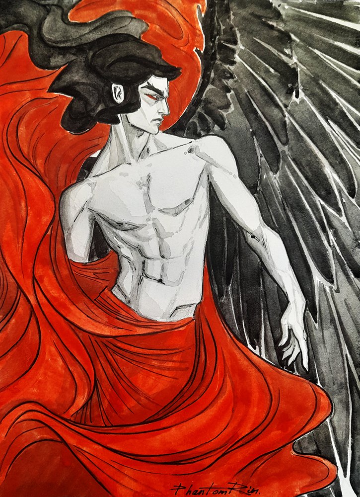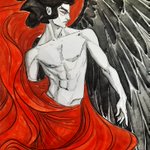 Inktober. Day 19 - Demon. #Inktober #inktober2022 #demon #wings #guy #red #fantasy #art #illustration #traditionalart #PhantomRin