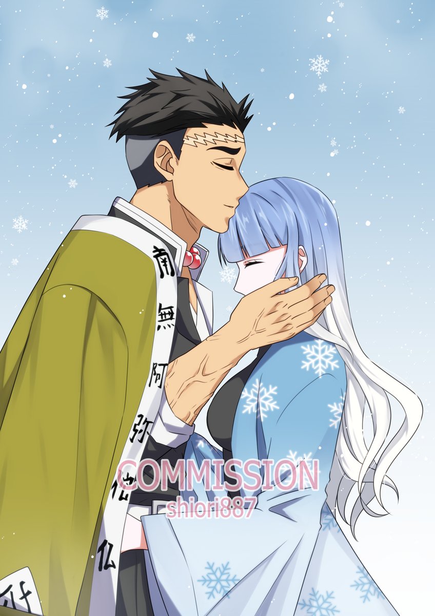 Commission for green_witch394 at instagram Characters OC of green_witch394 and Gyomei #Gyomei #DemonSlayer #fanart #snow #digitalart