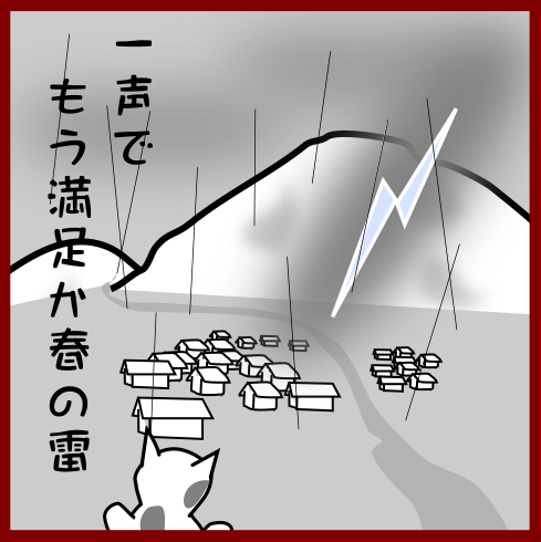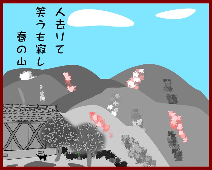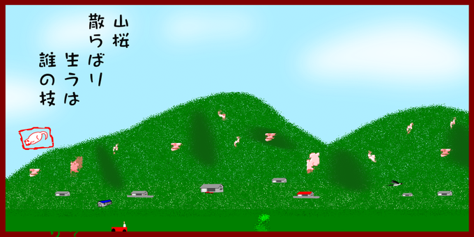 週末には 私の住む町にも 桜前線がやって来る 雨雲の隙間から 晴れ間がのぞいて ほころぶ花を 照らしてくれるだろう #俳句 #初桜 #haiku #AdobeFresco #赤と黒の絵日記 #イラスト #イラスト俳句 #絵描きさんと繋がりたい