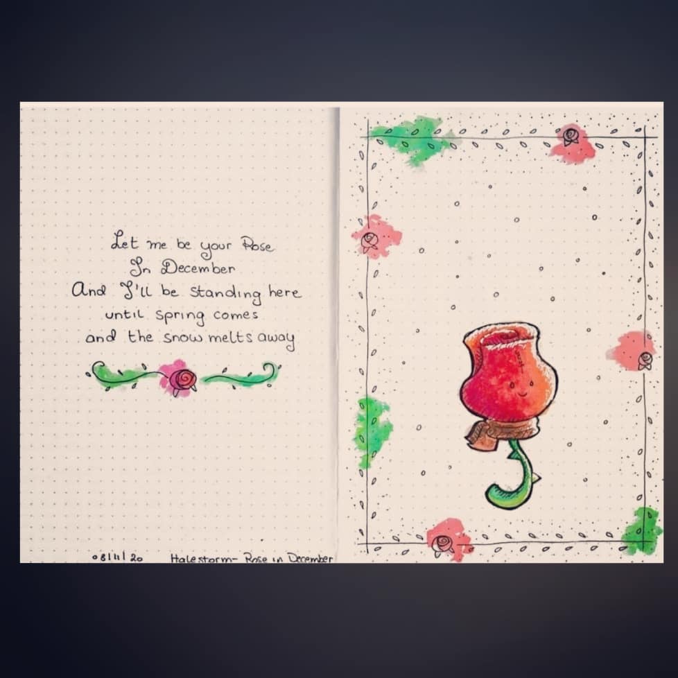 #ThrowbackThursday to a lovely song (and very fitting right now): Rose in December. I made this last year with copic markers and watercolors. 😊🌹#halestorm #illustration