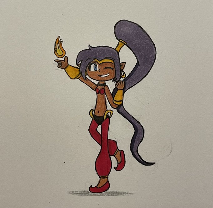 My entry for the #RedrawShantae contest. Here she is, @DatwonDoude !! :D Note: I miss drawing her and Thank God I drew this pretty Genie lady again. #Shantae seems to be excited for summer, yes? #shantae #halfgenie #girl #summer #fanart #cartoon #drawing #mrgustavitojr
