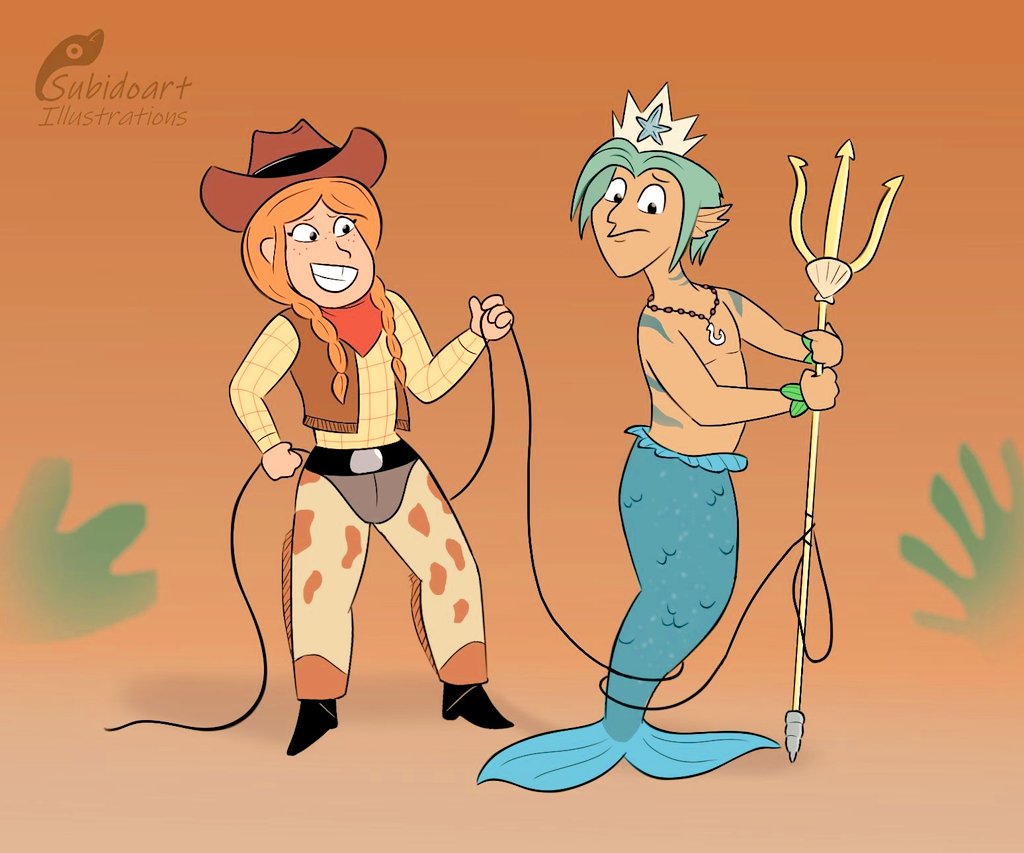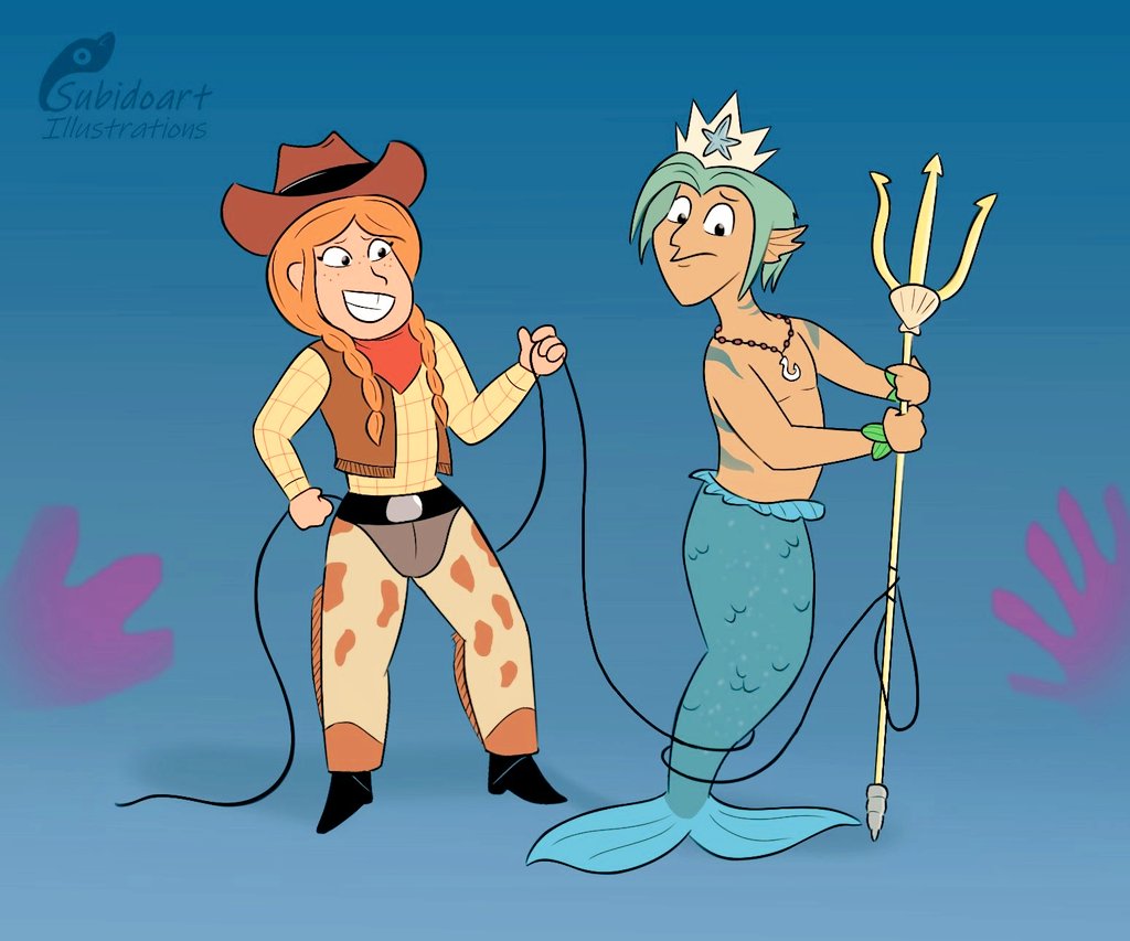 One of them brought the wrong costume. #halfwaytohalloween #mermay2022 #mermay #ArtistOnTwitter #DigitalArtist