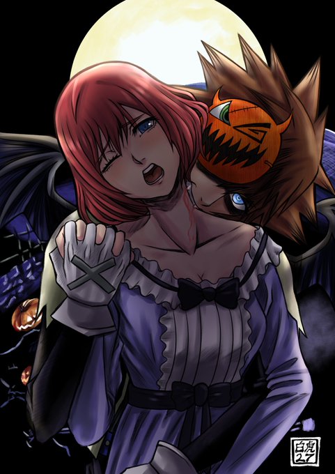I was up all night drawing and fell asleep lol. Happy Halloween! #HappyHalloween #Halloween #Halloween2022 #KingdomHearts #sora #kairi #vampire #art #drawing #illustration