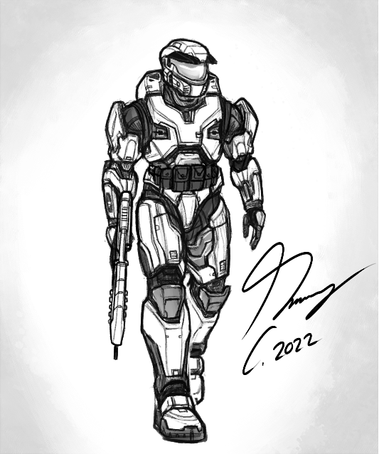 Upscaled the sketch and colored it. Like I described it on Instagram. "Arms like Pillars and Legs like Tree Trunks." If John can slap a missile out of his face. Gotta have that build for it. #halo #halofanart #haloart #haloce #drawing #halospotlight