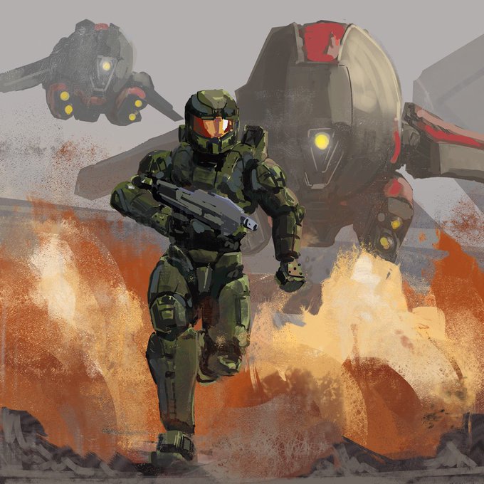 Banshee attack! Running off. Hard time for Chief😛 Happy!😀 Finally finished this one painting. #Halo #haloinfinite #halofanart #halofan #halospotlight #worldofhalo #scifi #scifiart #scifiartwork #illustration