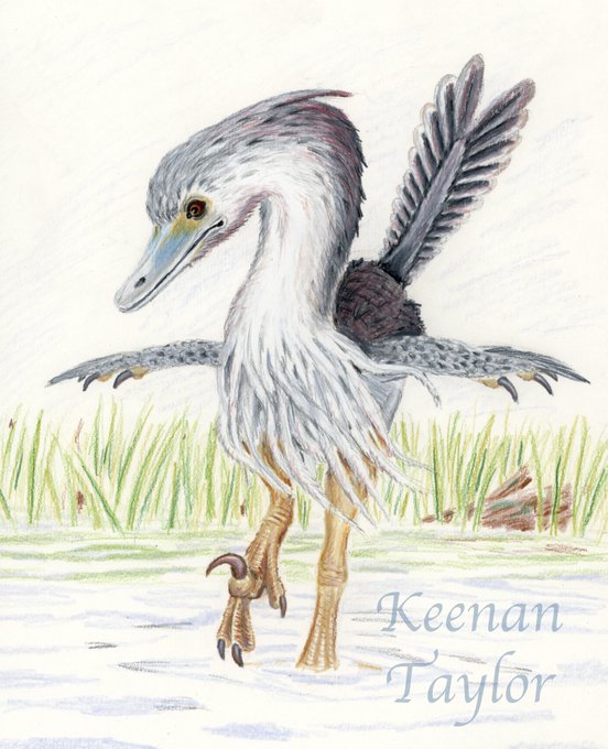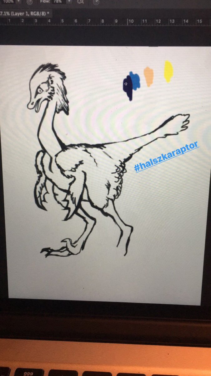 Another one of those midnight speedpaints. Just realised I had never reconstructed #Halszkaraptor, the famous raptor-duck. Had to quickly fix this horrible problem. #paleoart