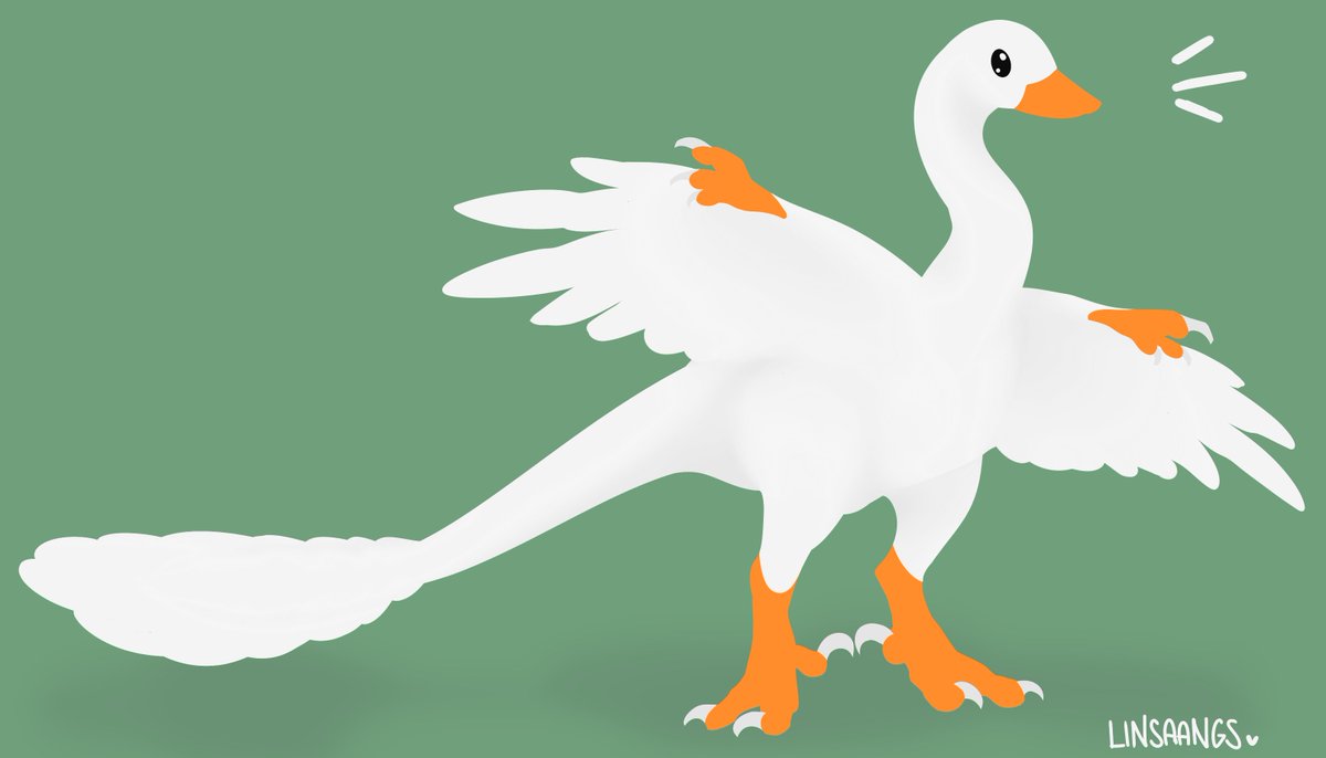 It's a lovely morning in the late Cretaceous, and you are a horrible halszkaraptor. #halszkaraptor #untitledgoosegame #GooseGame #paleoart