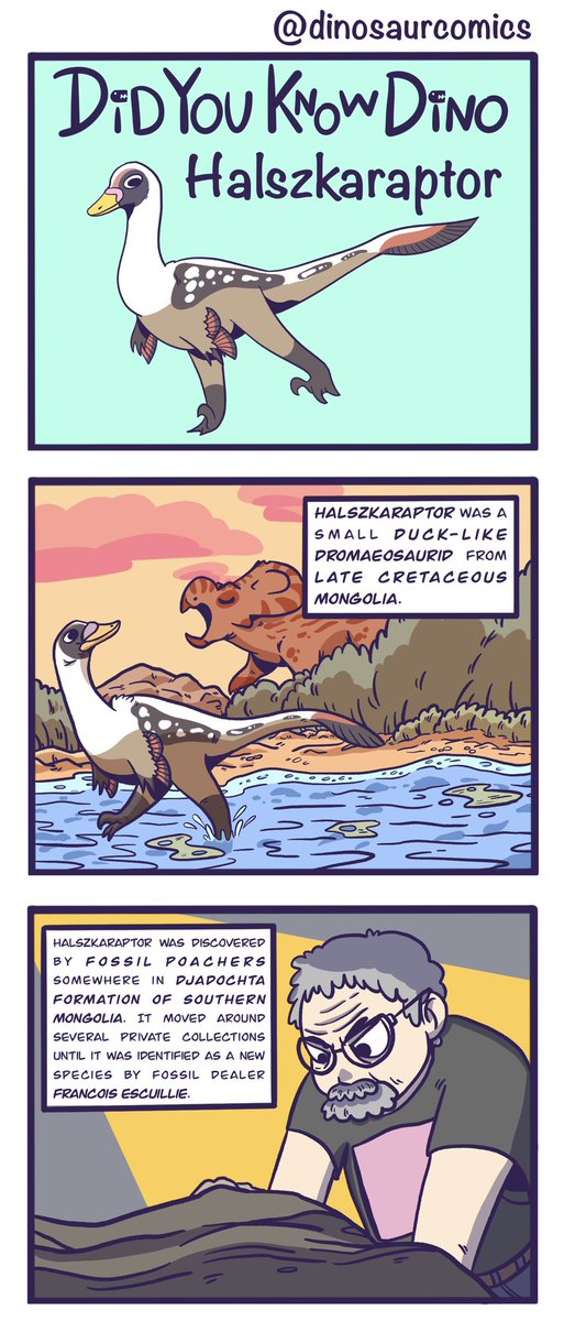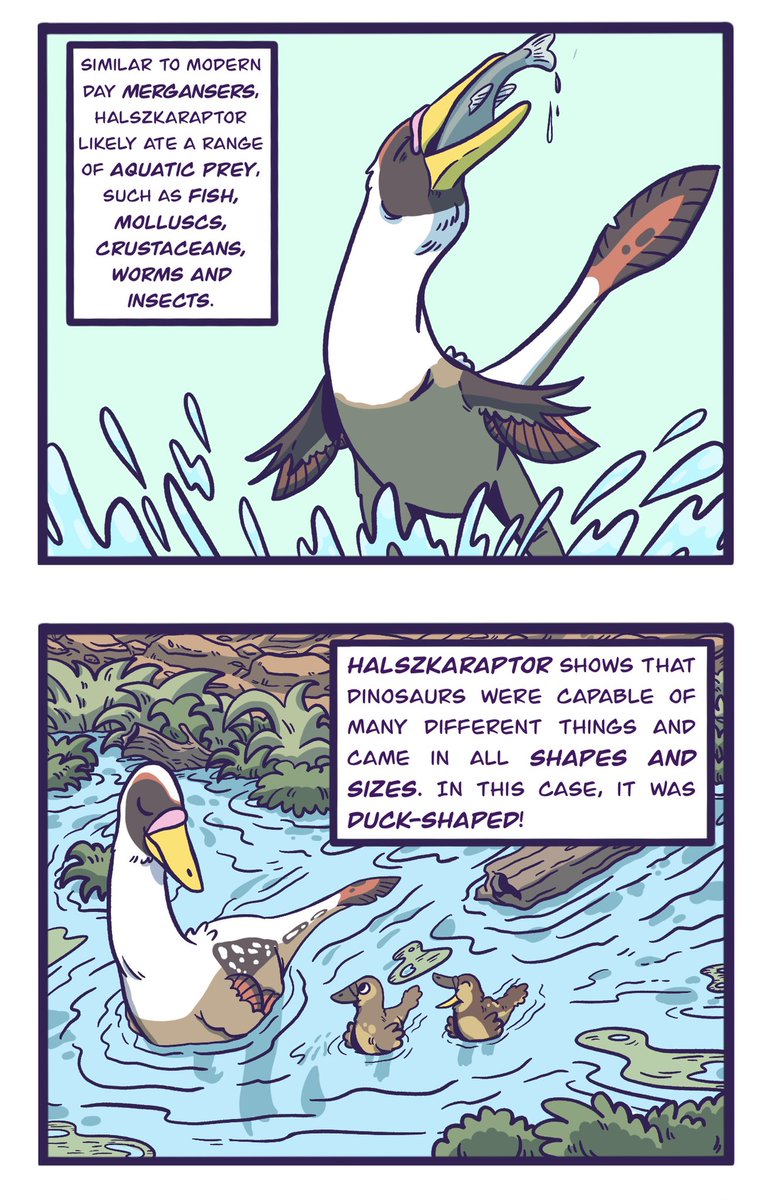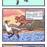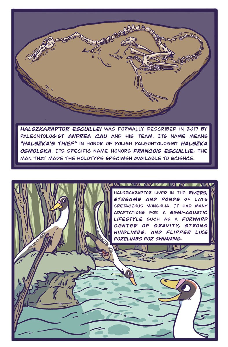 Here’s my comic on #Halszkaraptor ! Thank you to @CharlotteHohman for help with research and the script! #paleoart #paleontology #comics #webcomics