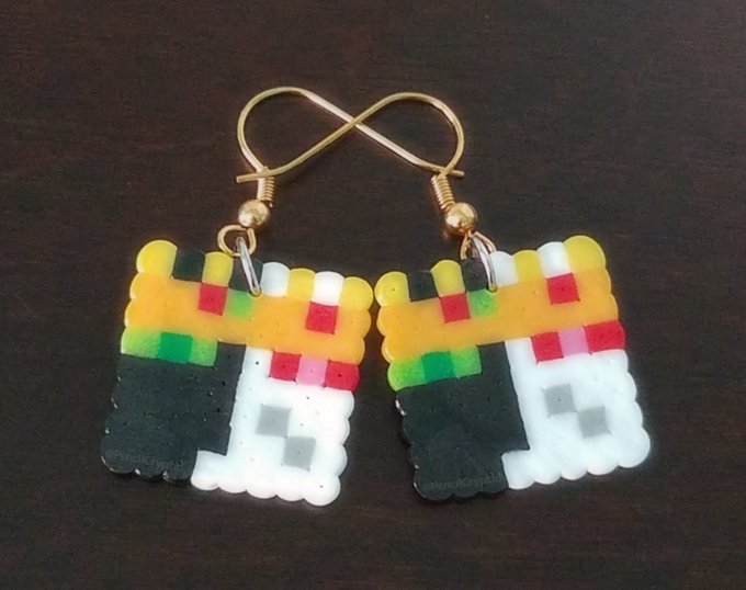 Ranboo and Aimsey FINALLY got their ears pierced! Which means once their ears heal, they can wear funky earrings like these ones, which are based off of their Minecraft skins! [RTs are always appreciated!] #ranboofanart #aimseyfanart #glowduofanart #dsmpfanart #handmadejewelry