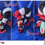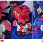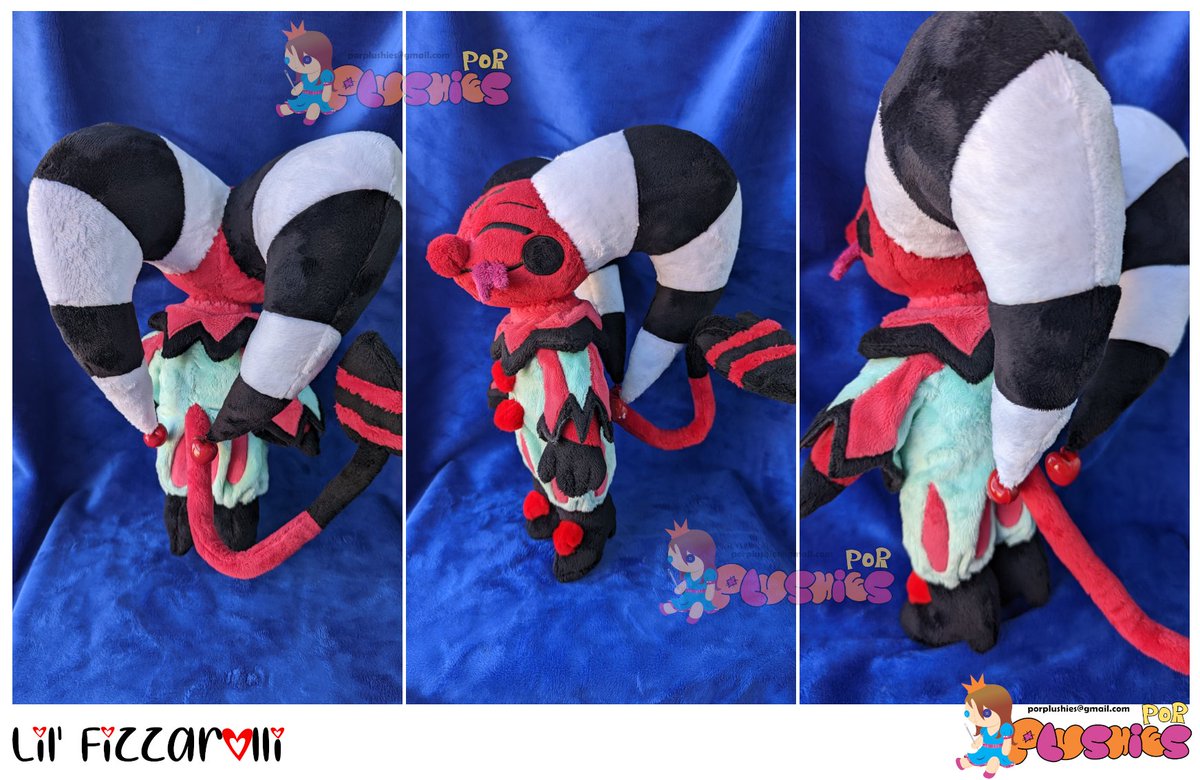 Baby Fizzy!! He is 13" tall and has little heart jingle bells on his horns <3<3<3 His tail is poseable! He was so much fun to work on. I can't wait to finish my other Fizzies. #PoRPlushies #FizzaRolli #helluvaboss #helluvabossfanart #HelluvaBossSeason2 #handmadeplush #plushies