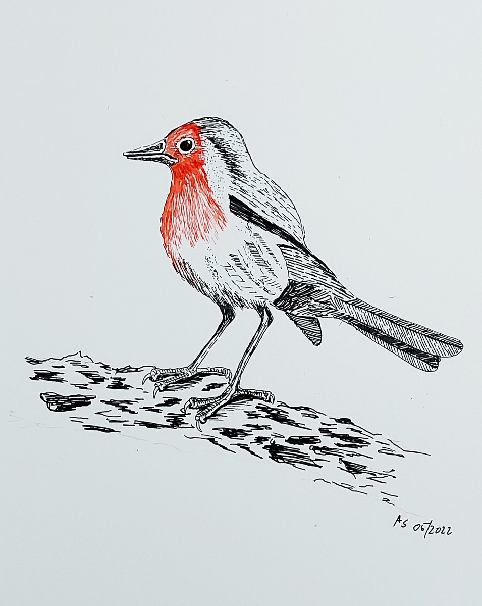 #handMAYde #kleineKunstklasse #artshare #ArtistOnTwitter #inkdrawing #penandink #artistsontwitter #sketch #sketchbook #drawing #ink #art #zeichnen ...it should be a robin, but looks more than a bird in tomato sauce...so what... 🥴🙂