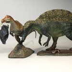 A stealthy #Irritator manages to catch a pterosaur when it was trying to take off from the edge of the cliff and fly away. 1/24 scale, epoxy clay #paleoart #dinossauro #dinosaurio #dinosaur #spinosauridae #brazil #brasil #handsculpted #handmade #handpainted #cretaceous