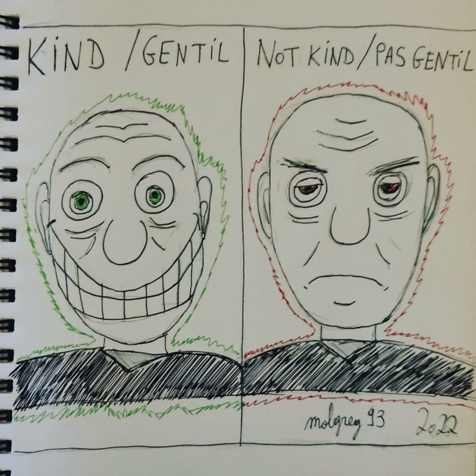 Jour 13 de l'INKTOBER ! Le thème du jour : "Kind/Gentil"! Et pour l'occaz, je voulais rendre hommage au fameux meme "Content/Pas Content" de Hank Schrader/Dean Norris 🤣 instagram.com/p/CjqWJQLqJfv/… #inktober #inktober2022 #kind #cartoons #drawing #hankschrader #deannorris #Memes