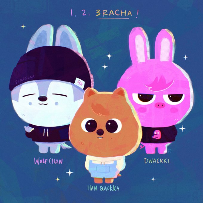 011822_ 🐺+🐹+🐖🐇 #3RACHA #5yearswith3racha #straykidsfanart #skzoo #wolfchan #hanquokka #dwaekki (old drawing from last year!)