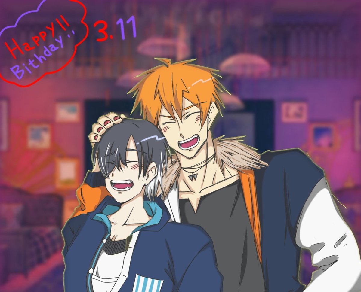双子ちゃん誕生日おめでとう〜🎉🎂🎉🎂🍔🍣 まさに以心伝心で仲良しな2人が大好きだーー🥰🫶🏻 皆からめいっぱいお祝いしてもらってくれー❣️ #ObeyMeBD #ObeyMeTwinsBD #HappyBirthdayBeelzebub #HappyBirthdayBelphegor