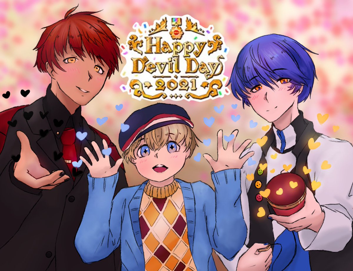 Happy Devil Dayyyyy (as you can see, I'm absolutely exhausted, I am sorry my art is really bad this time, sorry) 🧡🖤💙 #obeyme #obeymeleviathan #obeymefanart #obeymeshallwedate #obeymeluke #obeymediavolo #happydevilday #hdd2021
