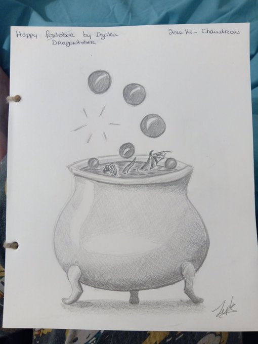 Dessin du jour pour le #inktober2021 thème #chaudron ! Premier dessin que j'arrive à faire sans référence je suis contente ^^ ( Si si je vous jure que ce dessin a toujours un rapport avec les dragons ) #happyfoxtober #inktober2021day14