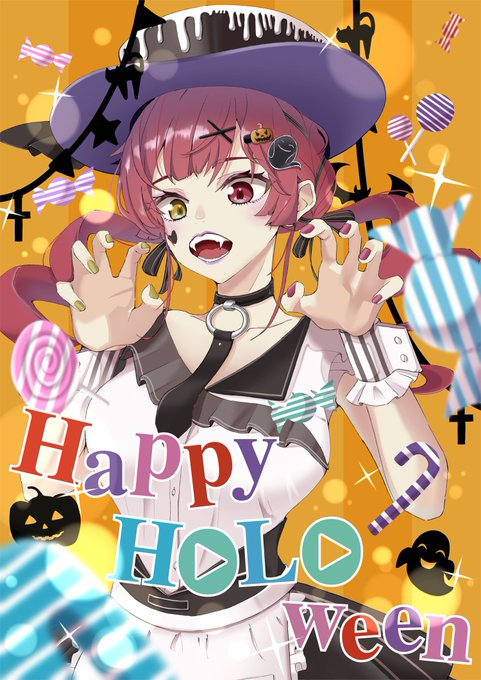 Happy HOLO ween!!! #宝鐘マリン #マリンのお宝 #ホロライブ #illustration #ハロウィン #happyhalloween #happyholoween #ファミマ #ホロマート