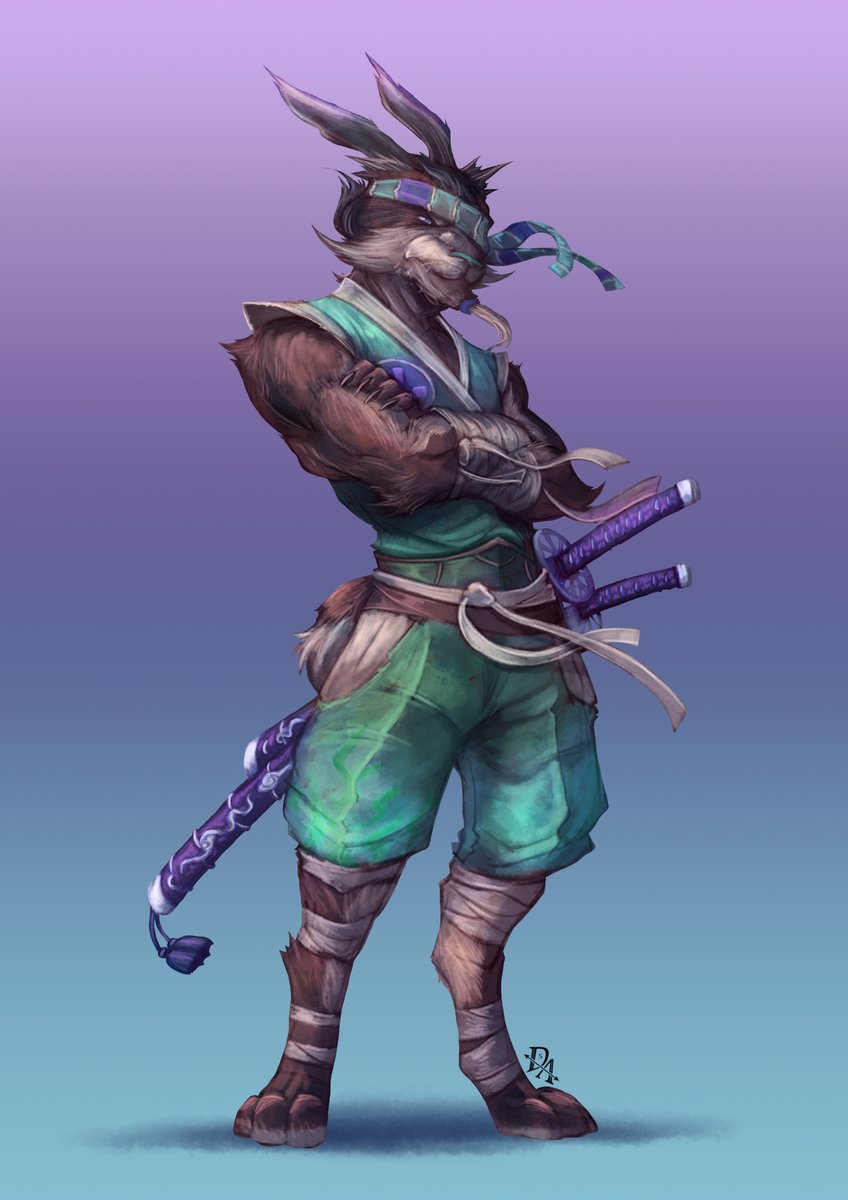 Usagi Who? (Has this been done already?) #dnd #dndart #dndcharacter #dungeonsanddragons #harengon #rabbit #hare #samurai #kensei #fighter #monk #commission #commissionart #commissionsopen