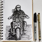 Easy rider - a biker with a PONYTAIL for today's @inktober prompt #inktober #harleydavidson #bikesketch #inktober #inktober2022ponytail #inkart #sketchbook #drawinginpen #illustration