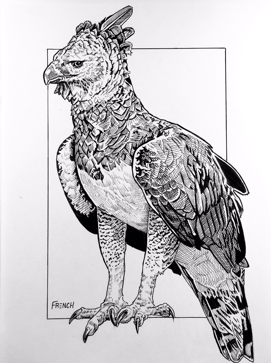 Inktober 2022 no.11 - “Eagle” 🦅 I remember reading about the #HarpyEagle from a bird book I had as a kid. A bird so powerful, it could catch macaws, monkeys, sloths, iguanas, snakes and even pigs. #inktober #inktober2022 #InktoberEagle #inktoberday11 #artistsontwitter