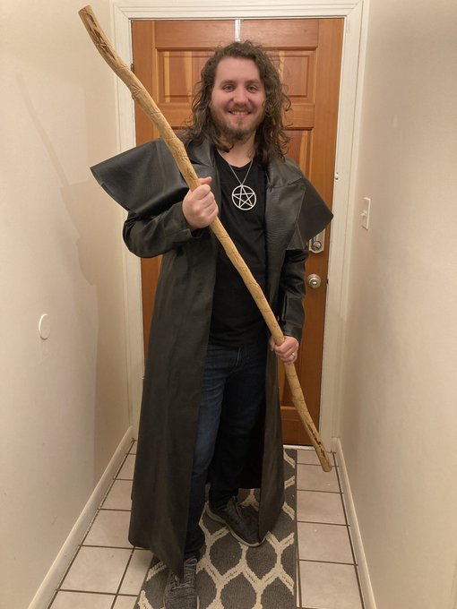 I decided to set up a #HarryDresden corner of my room (basically all my Dresden #cosplay stuff). Above it all is a really cool piece of Harry art by @TylerWalpole, a comic book artist and the artist who did the art for the #DresdenFiles CCG. 1/3