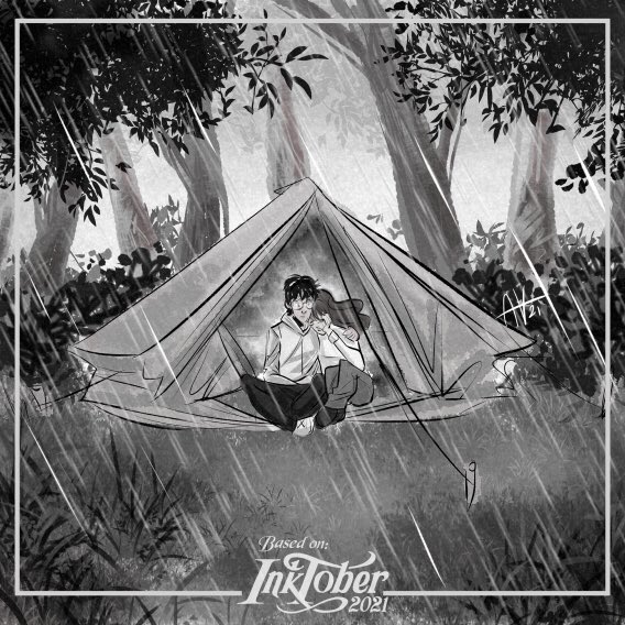 Inktober day 13 - Roof On the hunt for Horcruxes, Harry and Hermione miss Ron 💘 #HarryPotter #HermioneGranger #harrypotterart #inktober #inktober2021 #fanart