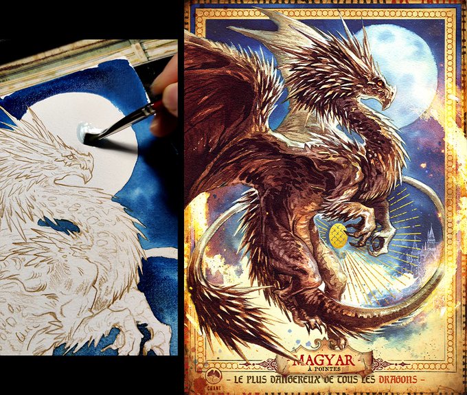 MAGYAR à pointes // HUNGARIAN horntail !🐉 Le plus dangereux de tous les dragons... Je me suis enfin décidée à réaliser quelques dragons issus de l'univers de #harrypotter ! Il vous plaît ? 💙 #HarryPotter #harrypotterartwork #dragon #watercolor