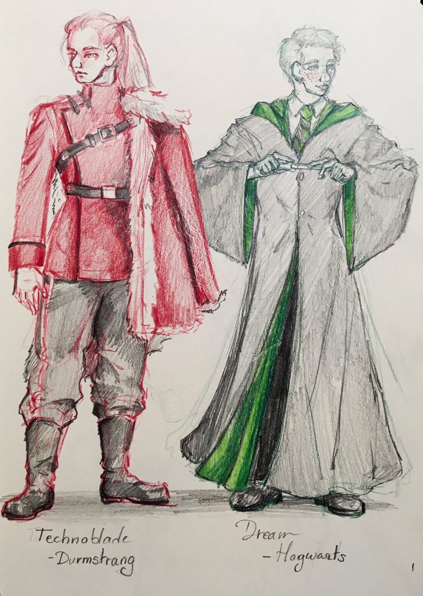 I felt a clear lack of Harry Potter AU in the DreamSMP, so here I am with quick sketches of Durmstrang Technoblade and Hogwarts Dream #dreamsmp #harrypotterau #technofanart #dreamfanart