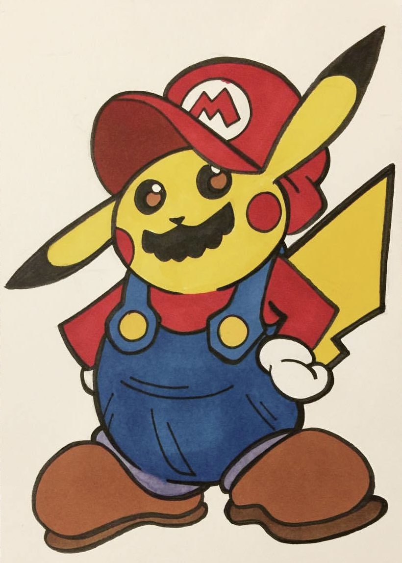 Inktober day 28: PIKAMARIO for #Poketober #inktober #inktober2021 #pokemon #supermario #pikamario #supermariobros #hartsquad #pokemonart #pokemonfanart #nintendo #mashup #supersmashbros