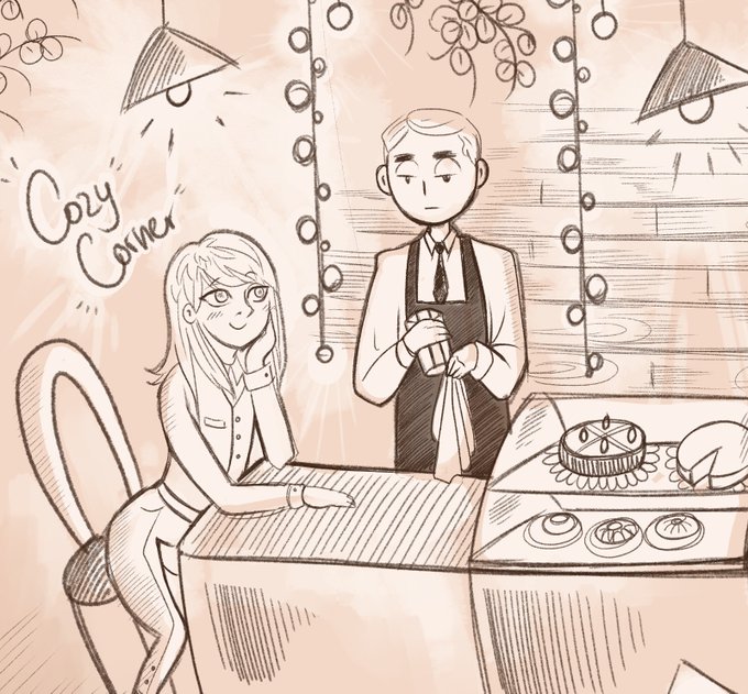 Working on my newest #musan artwork which is inspired by a convo with @streetcat_ao3 Mucho as the owner of Café "cozy corner", Haru is his boyfriend to be, admiring him for his hard work and the cheesecake ❤️🍰 #東卍FA #TokyoRevengers #sanzu #mucho #haruchiyo #ArtistOnTwitter
