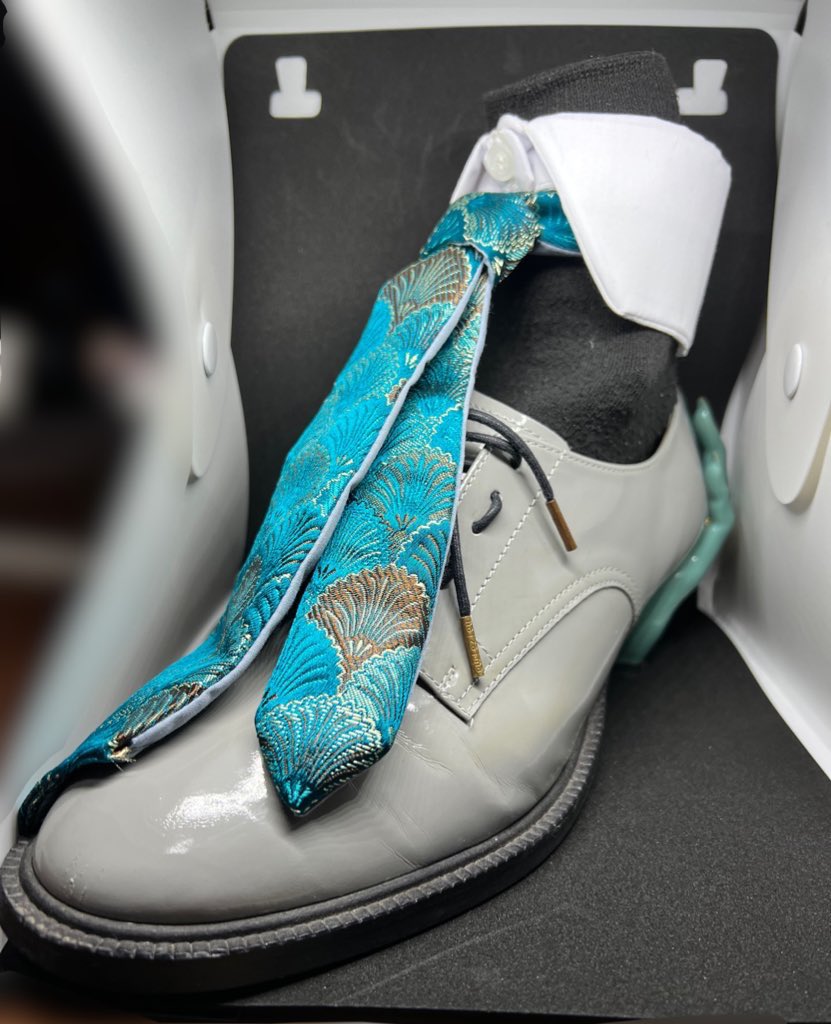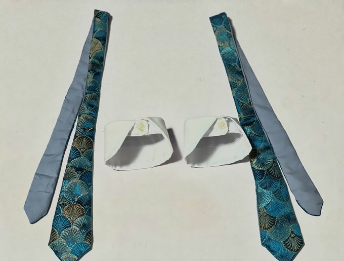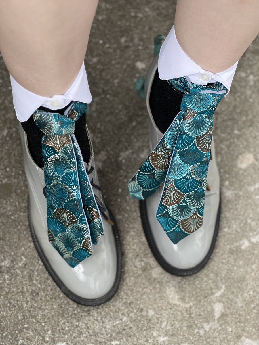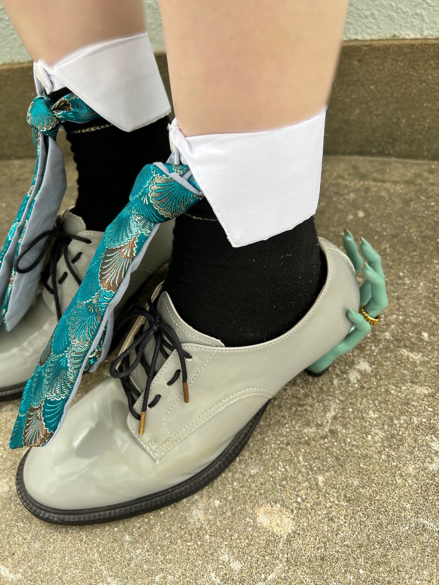 hazamaの緑のおててに合わせたくて、足首用の襟とネクタイ(モドキ)作った。 ネクタイの柄の向き左右で逆になってしまったけど、まぁこれはこれでアリということで。 こういうのもこのタグ使っていいのかしら?と思いつつ。 #hazama_fanart