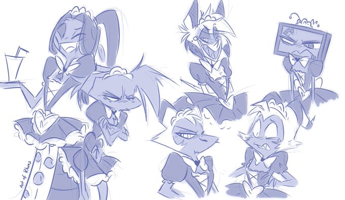It's been a long week so I felt maid uniforms were needed... #HelluvaBossFanart #HazbinHotelFanart #HelluvaBossMoxxie #HelluvaBossStriker #HazbinHotelVox #HazbinHotelAlastor #HazbinHotelSirPentious #HazbinHotelArackniss #maidoutfit