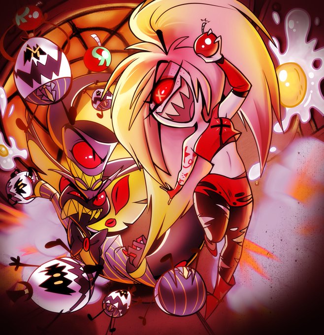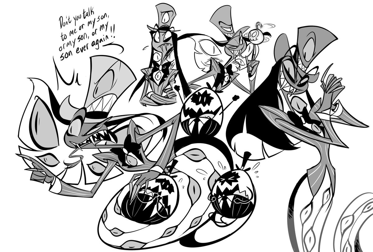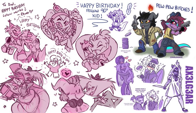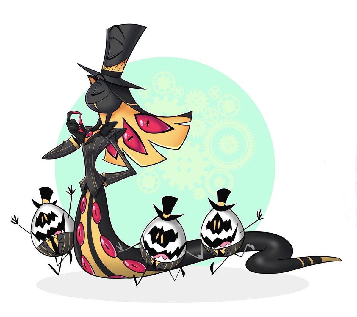 Fun little doodles @KalookiC and I did as a birthday gift for the fabulous @AxelGear11 🎂 #HazbinHotelFanart #HazbinHotelSirPentious #HazbinHotelArackniss #artofrhues