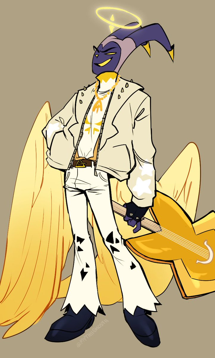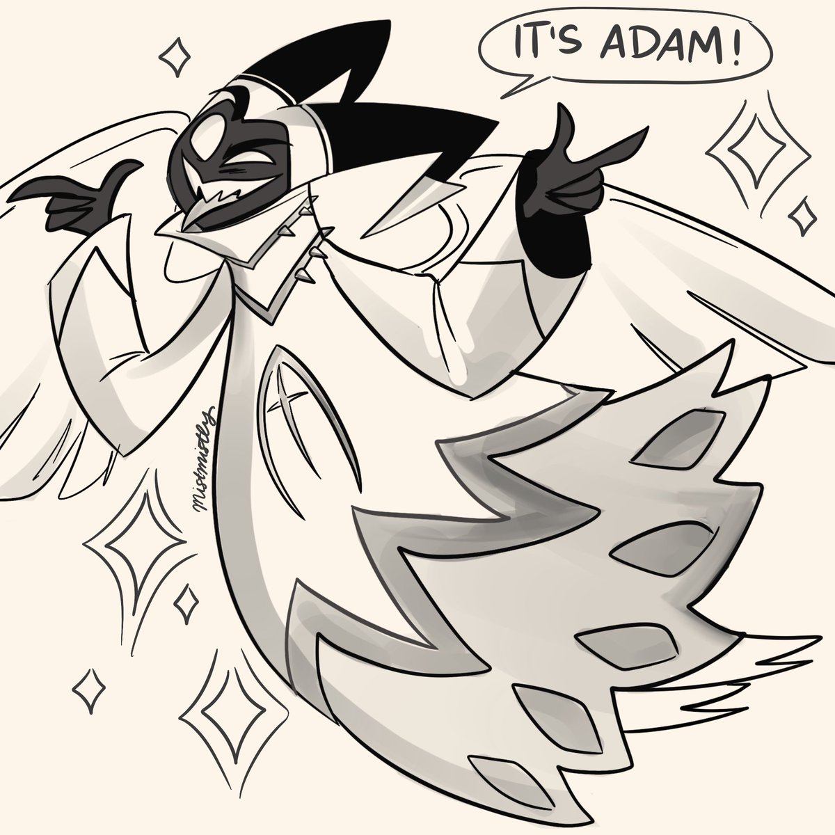 I don't really have an excuse for this, other than wanting to draw him in rock/heaven esc sorta clothing . #HazbinHotelAdam #hazbinhotel