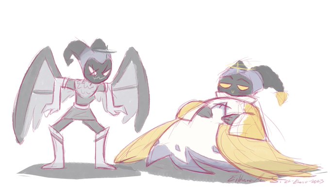 I think the colder it gets again, more cuddly moods seep in. #HazbinHotelAdam #HazbinHotelFanart #HazbinHotelLute #HazbinHotelOC #sketches
